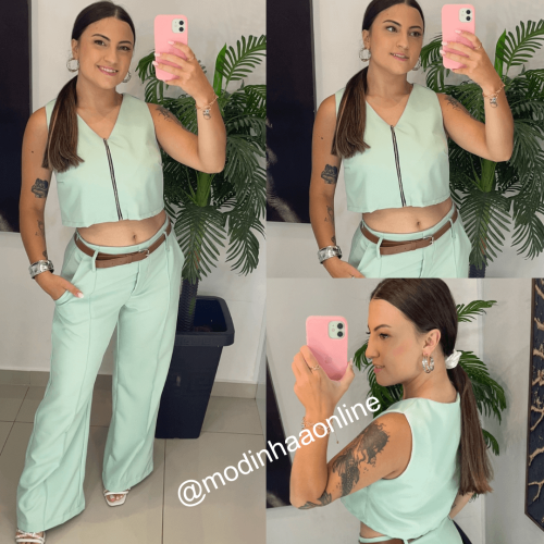 - Modelo: Cropped Alfaiataria Evilyn Verde Água