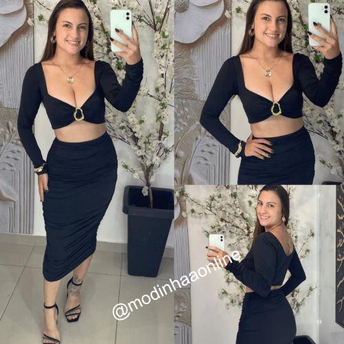 Blusa: Modelo Cropped, possui bojo e detalhe de argola dourada na parte frontal da peça;