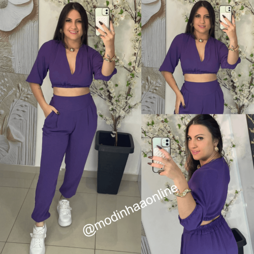 Blusa/ Cropped: possui bojo, manga 3/4, decote em V