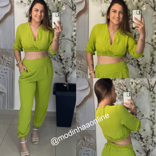 Blusa/ Cropped: possui bojo, manga 3/4, decote em V