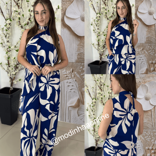 Blusa: Modelo regata assimétrica com amarração no pescoço, não possui bojo;