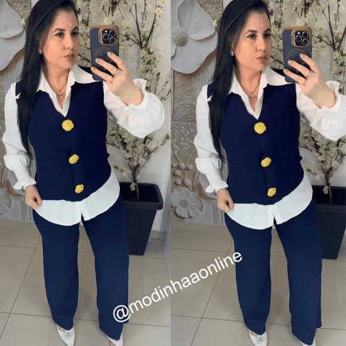 Blusa/Regata/ Colete : possui fechamento em botões na parte frontal da peça, comprimento varia conforme altura do tronco de cada pessoa,