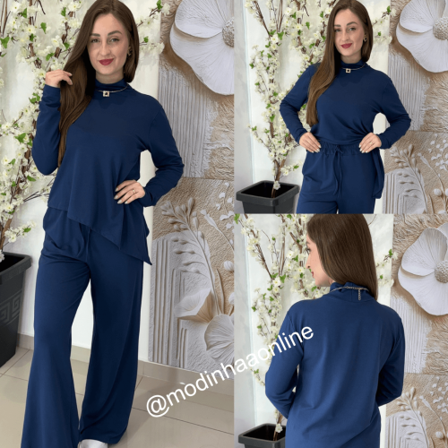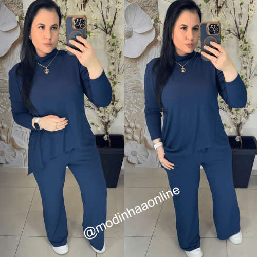 Blusa: Comprimento assimétrico, não possui bojo, manga longa