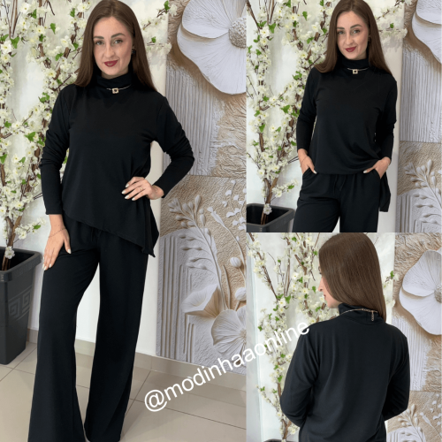 Blusa: Comprimento assimétrico, não possui bojo, manga longa