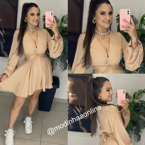 Macaquinho não possui bojo, com amarração no pescoço na parte frontal (conforme imagem) , possui elástico na cintura, possui mangas levemente bufantes onde permite o uso das mangas mais alongadas ou mais curtas, parte do shorts forrada e soltinha, dando mais conforto durante o uso e melhor caimento na peça, comprimento ira variar conforme altura de cada pessoa