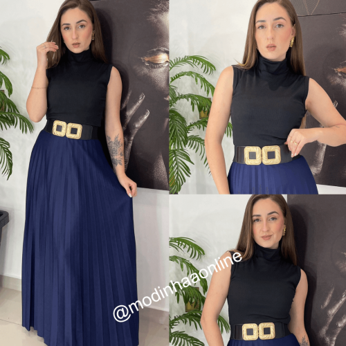 Saia Longa(ira variar conforme altura de cada pessoa) modelo plissado, possui forro (evitando a transparência), Elástico na cintura, na opção produzida com poliéster, o tecido malha helanca proporciona uma boa adaptação ao corpo, sensação térmica agradável, toque confortável e boa transpiração; NÃO ACOMPANHA CINTO