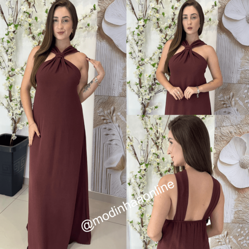 Vestido no tecido duna (não encolhe e não amassa), não possui bojo , não possui transparência, alças sem regulagem de altura com detalhe na parte frontal (acima do busto), corte reto, possui ótimo caimento, ótimo para ser usado em várias estações e ocasiões, comprimento ira variar conforme altura de cada pessoa, geralmente será longo;
