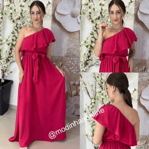Vestido no tecido duna (não encolhe e não amassa) possui elástico na cintura, modelo uma manga, detalhes de camadas de babados, não possui bojo , não possui transparência, possui ótimo caimento, ótimo para ser usado em várias estações e ocasiões, comprimento ira variar conforme altura de cada pessoa, geralmente será longo;