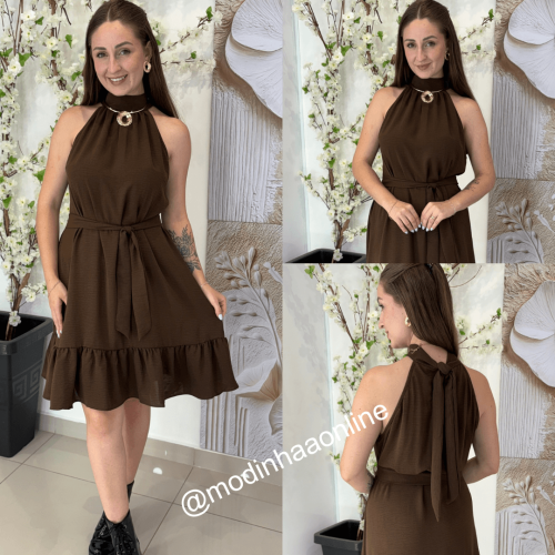 Vestido no tecido duna (ótima qualidade) não possui bojo , não possui forro, não possui transparência, fechamento em laço na altura do pescoço, possui ótimo caimento, ótimo para ser usado em várias estações e ocasiões, comprimento ira variar conforme altura de cada pessoa, geralmente será midi/curto; acompanha cinto do mesmo tecido da peça;