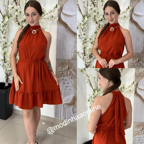 Vestido no tecido duna (ótima qualidade) não possui bojo , não possui forro, não possui transparência, fechamento em laço na altura do pescoço, possui ótimo caimento, ótimo para ser usado em várias estações e ocasiões, comprimento ira variar conforme altura de cada pessoa, geralmente será midi/curto; acompanha cinto do mesmo tecido da peça;