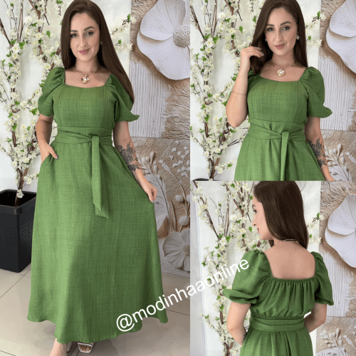 Vestido no tecido duna (não encolhe e não amassa) possui elástico (camada de lastéc) na cintura (parte das costas) possui bojo , não possui transparência, possui bolsos, apresenta ótimo caimento, ótimo para ser usado em várias estações e ocasiões, comprimento ira variar conforme altura de cada pessoa, geralmente será longo;