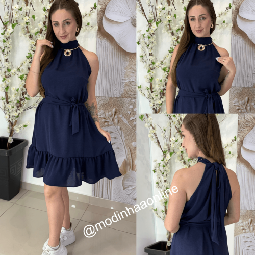 Vestido no tecido duna (ótima qualidade) não possui bojo , não possui forro, não possui transparência, fechamento em laço na altura do pescoço, possui ótimo caimento, ótimo para ser usado em várias estações e ocasiões, comprimento ira variar conforme altura de cada pessoa, geralmente será midi/curto; acompanha cinto do mesmo tecido da peça;