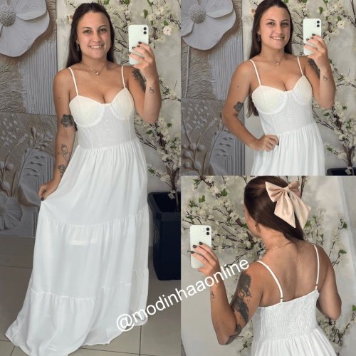 Vestido no tecido crepe e paetê (ótima qualidade) possui elástico na cintura, bojo, detalhe na parte frontal do busto em paetê (acima da cintura) possui lastéc na parte das costas, alças com regulagem de altura, a parte da saia possui 3 camadas (3 marias ) em tecido crepe possui ótimo caimento, perfeito para ser usado em várias estações e ocasiões, comprimento ira variar conforme altura de cada pessoa, geralmente será longo;