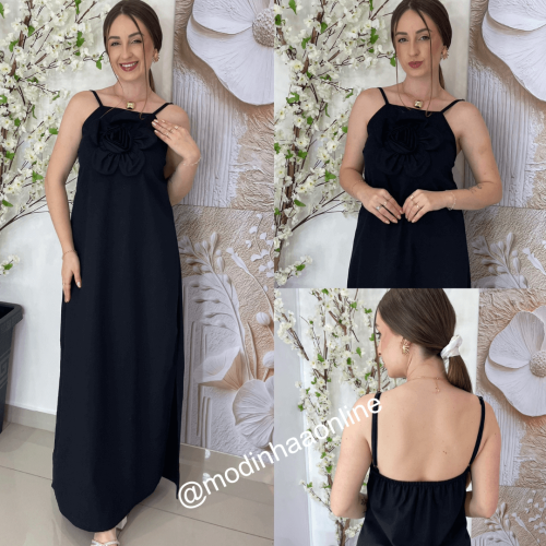 - Modelo: Vestido Linho Flor Preto